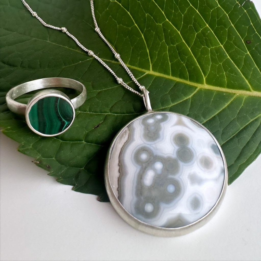 One of a kind pendants featuring natural stones and sterling.